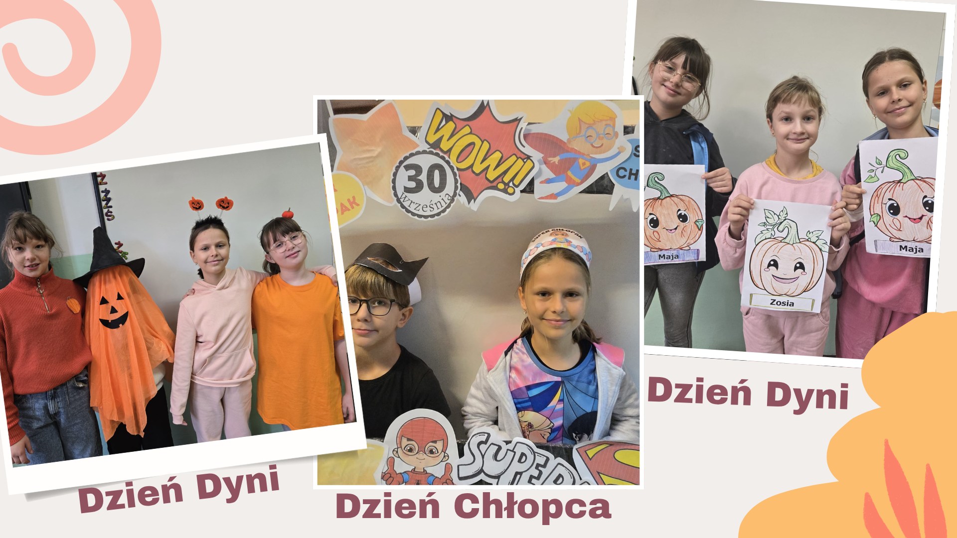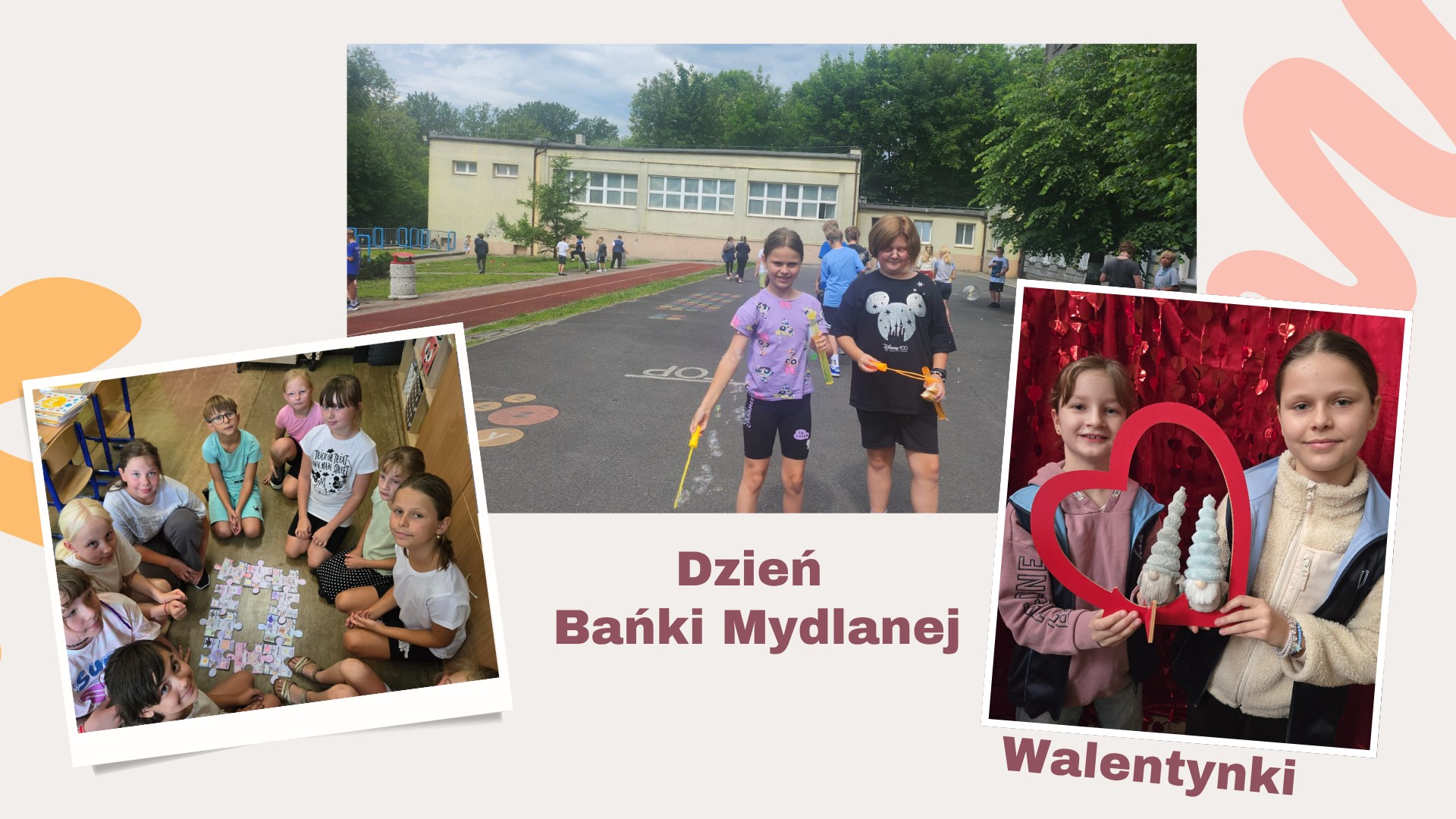 Ich szkolna codzienność to nie tylko nauka, ale też mnóstwo radosnych chwil: klasowe zdjęcia, Dzień Pszczoły 🐝, Dzień Dyni 🎃, walentynki ❤️, Dzień Dziecka 🎈, Dzień Chłopca, Dzień Bańki Mydlanej i wiele innych.
