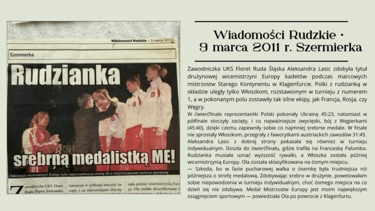 Czy wiecie, że to właśnie u nas – w SP 23 w UKS Floret trenowały jedne z najlepszych florecistek w kraju? Dziś w naszym cyklu wspominamy naszą absolwentkę, Aleksandrę Lasic 🌟
