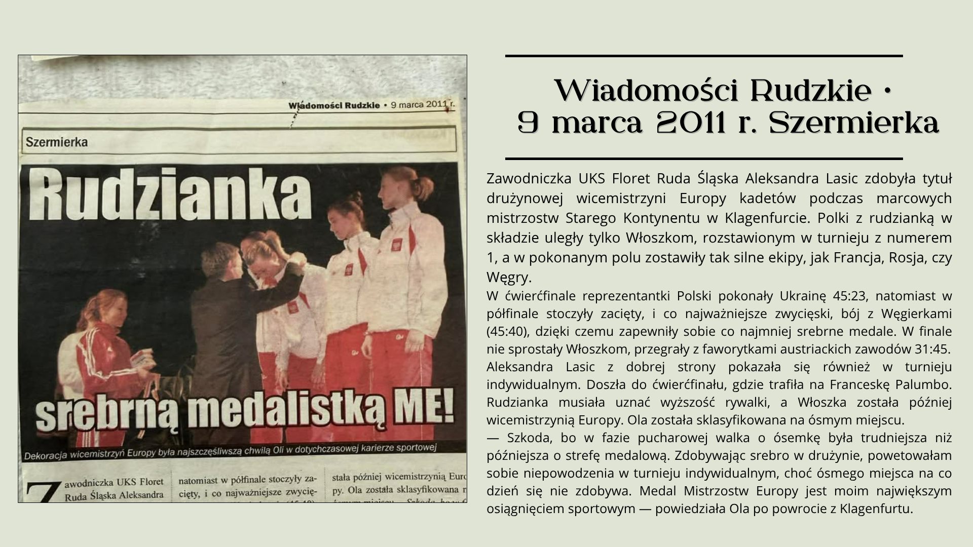 🤺 Osobliwości sportowe - Aleksandra Kokott (Lasic) 🤺