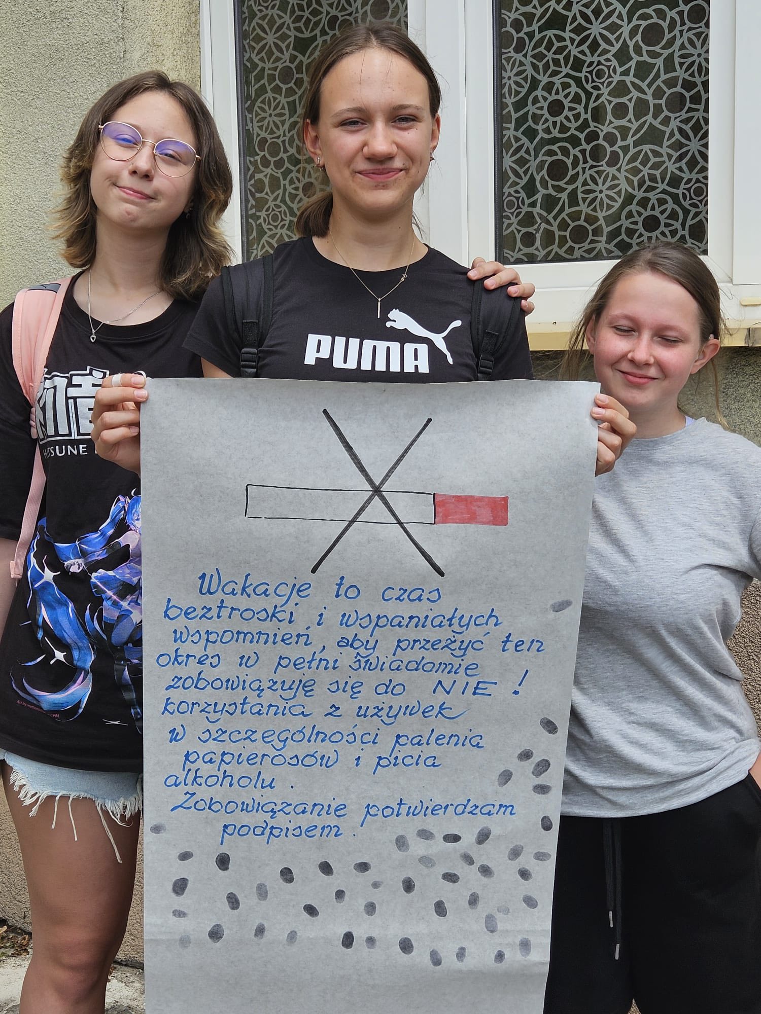 , w którym uczniowie w kreatywny sposób pokazali, dlaczego warto powiedzieć STOP nałogom. Były plakaty, hasła, scenki, a nawet happeningowy „pochód wolności od dymu”.