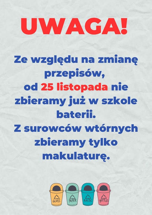 Uwaga! Zmiany w szkolnej zbiórce surowców wtórnych